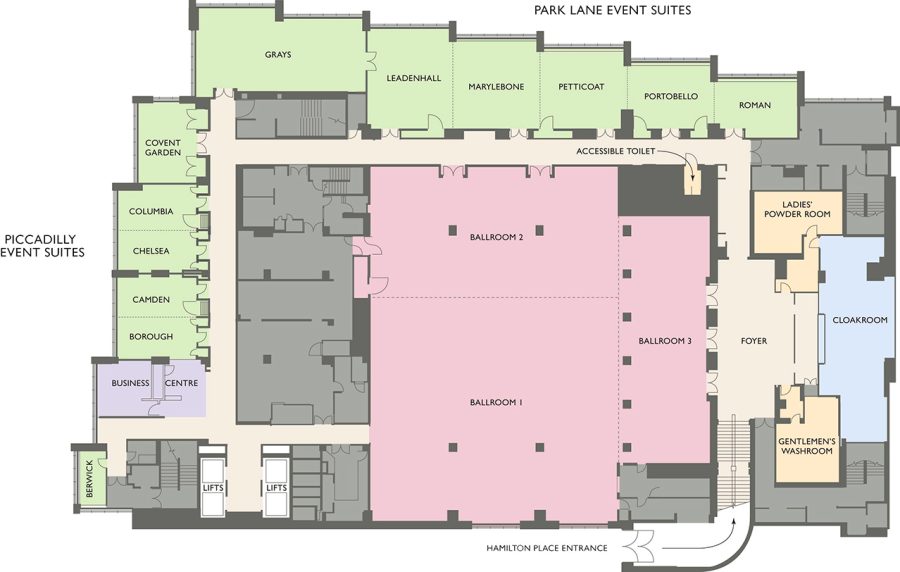 On the corner of Hyde Park and Park Lane, the entire 1st floor of this landmark hotel is dedicated to meetings and events. The rooms are well laid out, versatile and those running up Park Lane have floor to ceiling glass windows with views across Park Lane, past Aspley House towards Hyde Park.